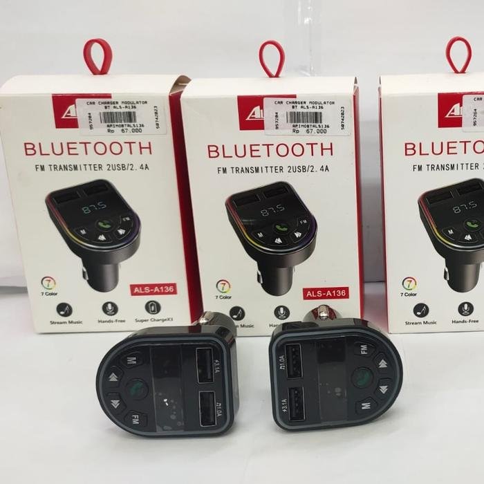Car charger modulator bluetooth ALS A136 adalah sebagai pengisi daya ponsel, pemutar musik, dan alat komunikasi. Perangkat ini mengintegrasikan fungsi pengisi daya USB, transmisi audio FM, dan dukungan Bluetooth untuk panggilan telepon hands-free. Selain itu, beberapa model juga mendukung media penyimpanan seperti SD card dan USB flash drive untuk memutar musik.