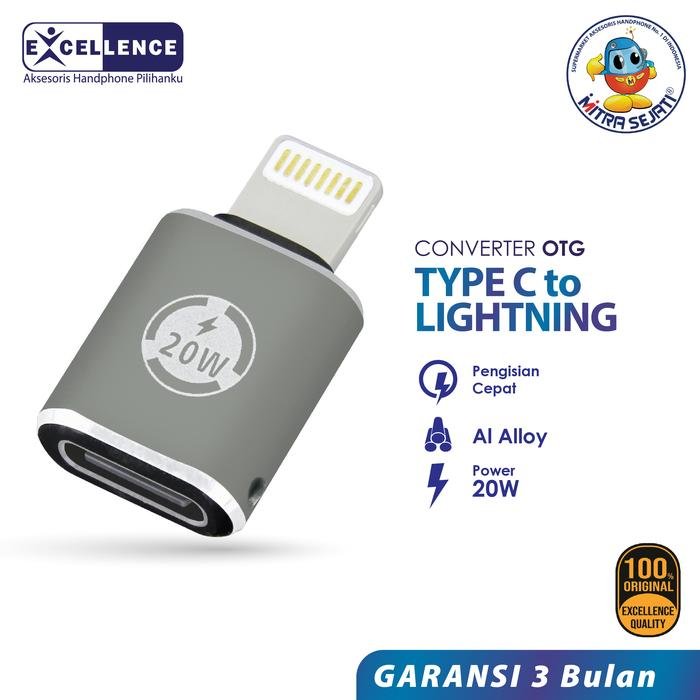 Adapter Coverter Excellence C Female To iPhone dengan daya 20W adalah sebuah adaptor yang memungkinkan Anda menghubungkan perangkat atau charger USB Type-C dengan daya 20W ke perangkat Apple yang menggunakan konektor Lightning. Adaptor ini memungkinkan pengisian daya cepat untuk iPhone, iPad, atau iPod Touch Anda ketika digunakan dengan sumber daya USB Type-C yang mendukung output daya 20W.