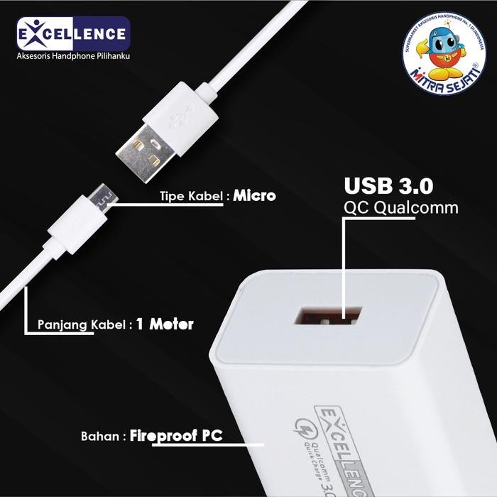 EXCELLENCE ALDOUS Travel Charger Micro USB 3A 18W Fast Charging Panjang
