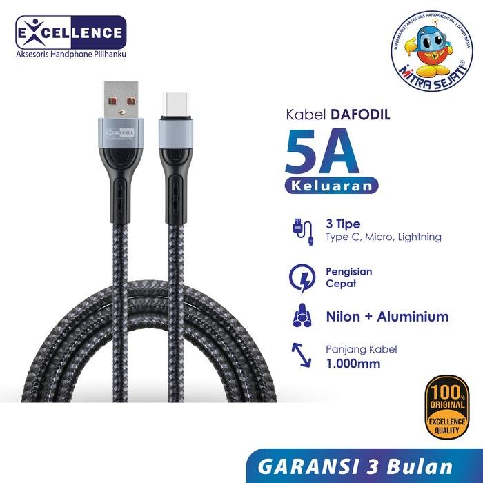 Kabel Data Excellence Dafodil 6A adalah sebuah kabel data yang dirancang untuk pengisian daya cepat dan transfer data yang efisien untuk berbagai jenis perangkat elektronik. Kabel ini dilengkapi dengan tiga jenis konektor yang berbeda: Lightning (untuk perangkat Apple), Micro USB, dan USB Type-C. Kabel data dengan panjang 1 Meter ini dibuat dengan desain yang pas, elegan, dan tentunya dengan material bahan yang berkualitas.