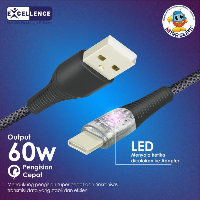 Kabel Data Excellence Jewel 60W Type-adalah kabel dengan koneksi andal yang menggabungkan daya dan kecepatan dalam satu kabel. Dirancang untuk memenuhi kebutuhan perangkat modern, kabel ini dilengkapi dengan konektor Type-C yang mendukung pengisian daya hingga 60W, sehingga dapat memberikan pengalaman pengisian yang cepat dan efisien.