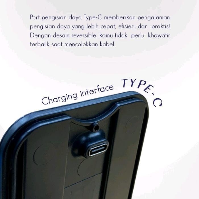 Charger ini memiliki model H51 dengan dimensi 125*105*28mm dan terbuat dari bahan ABS+PC yang berkualitas tinggi. Charging interface yang digunakan adalah Type-C dan input voltage yang dibutuhkan adalah 5V2A atau 9V11.67A. Output power yang dihasilkan adalah 15W dan menggunakan Lithium Polymer Battery yang memiliki kapasitas baterai yang tinggi.