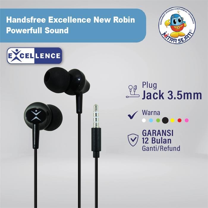 Handsfree Music Excellence Stereo New Robin ini merupakan handsfree yang dilengkapi dengan silikon lembut yang membantu mengurangi kebisingan. Headset ini dibuat dengan material yang aman sehingga awet dalam penggunaan waktu yang lama. Earphone dengan sistem plug in dipadu fitur hyperbass stereo untuk kejernihan suara dan kenyamanan mendengarkan musik.