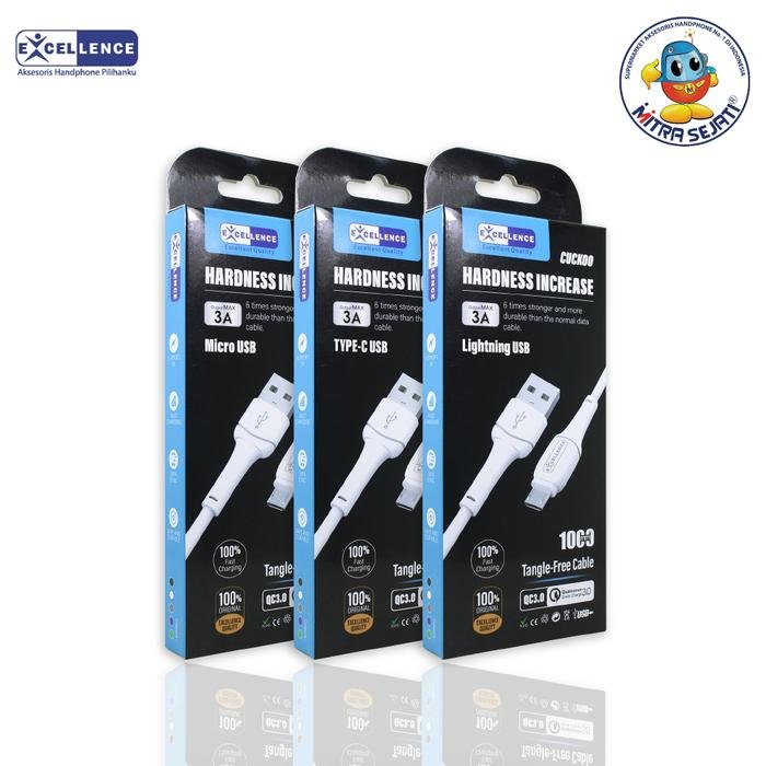 Kabel Data Excellence Cuckoo 100 cm Micro, Type C, dan iPhone yang bisa kamu gunakan untuk menghubungkan Produk Android/IOS ataupun Laptop/Notebook/Macbook melalui koneksi USB kabel ataupun ke travel charger milikmu, kabel ini dibuat dengan design yang pas, elegan, dan tentunya dengan material bahan yang berkualitas tinggi dan baik.