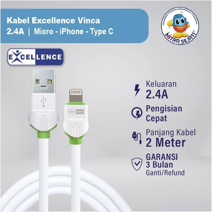Kabel yang terbuat dari material berkualitas tinggi, dengan panjang kabel 200cm. Jenis kabel elastis sehingga tidak mudah putus. Support fast charging dengan output 2.4A