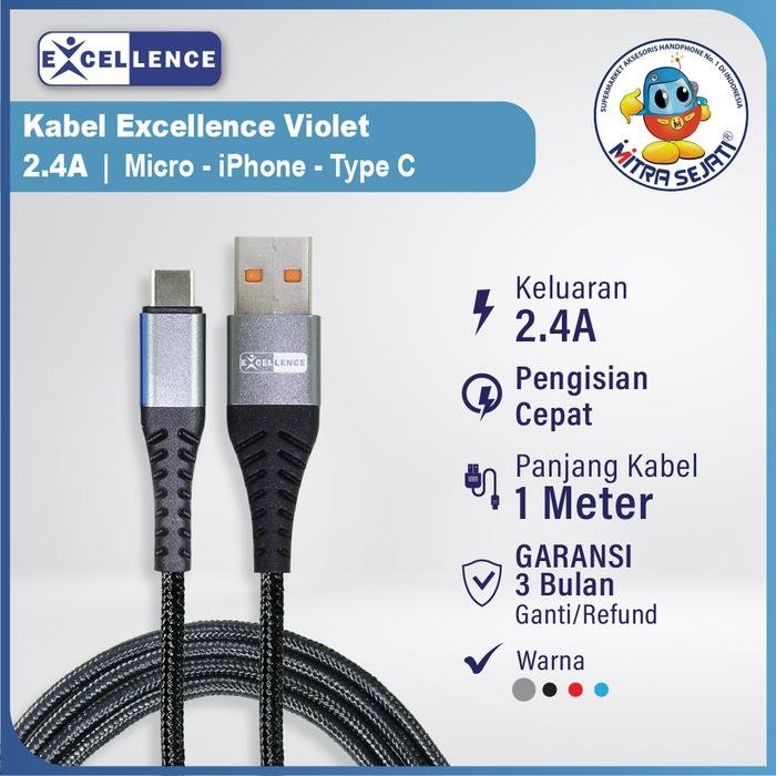 Kabel Data Excellence Violet 2.4A For iPhone/Micro/Type C