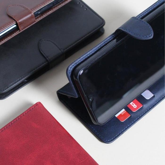 Case dari bahan kulit premium & tebal, full protection 360?, desain classic formal dengan jahitan asli bukan motif. Tekstur kulit nyaman di genggam. Memiliki fungsi flip stand, dapat diberdirikan secara horizontal, dan terdapat slot tempat kartu/uang.