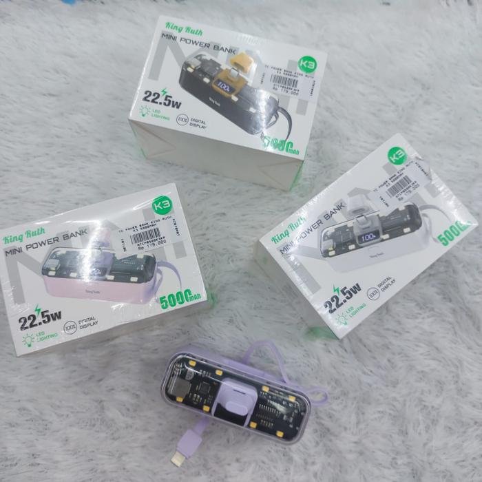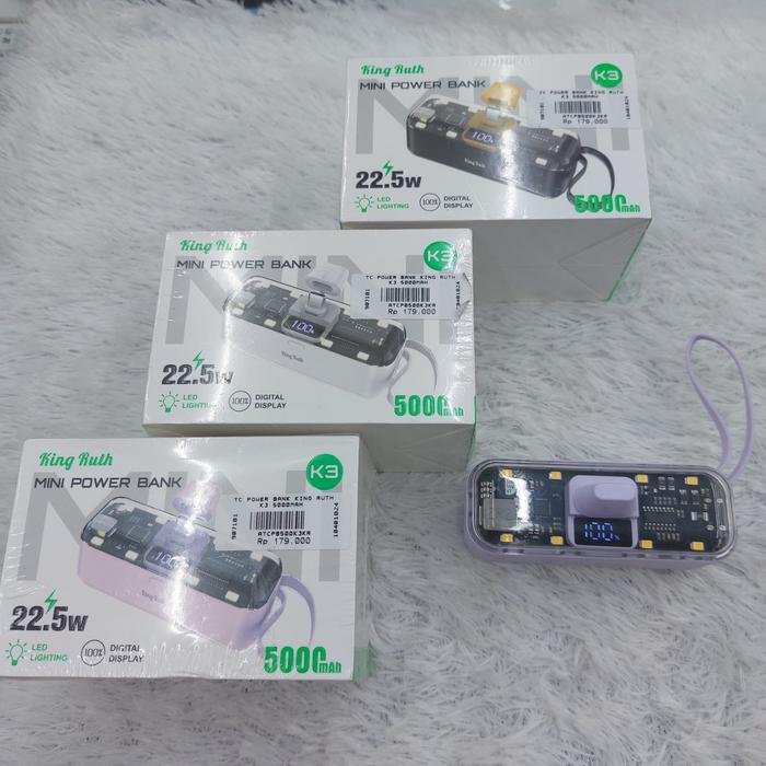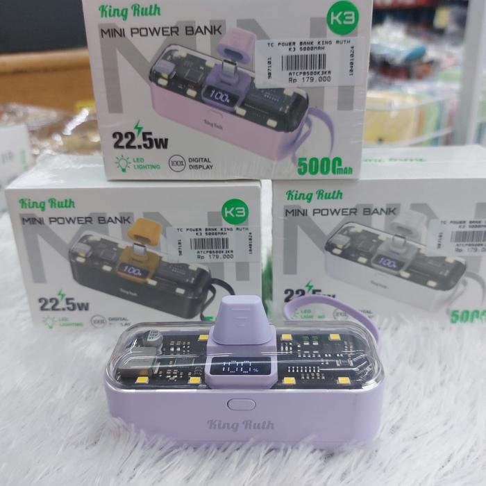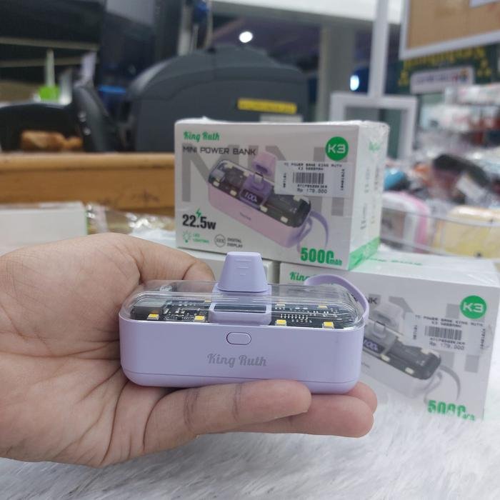 Power bank mungil dengan desain transparan yang unik, cocok buat kamu yang suka tampil beda! King Ruth K3 Mini Power Bank hadir dengan kapasitas 5000mAh dan teknologi 22.5W fast charging untuk pengisian daya super cepat. Dilengkapi dengan,
