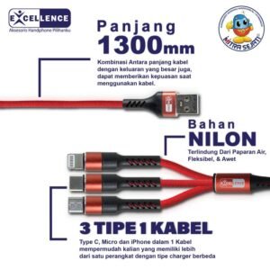 Kabel Data Excellence Cassia 6A untuk Lightning/Micro USB/Type-C
